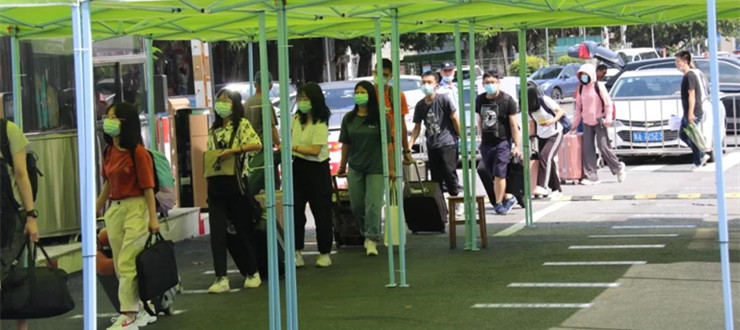 返校学生井然有序回到砚园