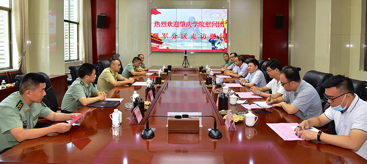 曾桓松高度评价军分区为肇庆市经济社会繁荣稳定作出的贡献,衷心感谢军分区长期以来对永利官网建设发展,特别是大学生军训、国防教育、征兵等工作给予的支持,并代表学校在人民解放军建军93周年之际向军分区全体指战员献上节日的祝福。他介绍了永利官网最新发展概况,分享了全校师生喜迎50周年校庆的愉悦,希望双方加强来往,深化传统友谊,不断丰富双拥共建活动内容,密切军民合作关系,进一步提高双拥共建水平。