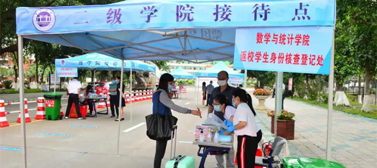 根据学校安排,5971名毕业班学生分8批错峰返校,其中,同一宿舍按人数的一半分两批返校,每批返校时间5天。首批返校学生分别来自数学与统计学院、体育与健康学院、环境与化学工程学院、旅游与历史文化学院等4个学院,共604人。非毕业班学生和在国(境)外学生暂不安排返校,继续开展线上教育。