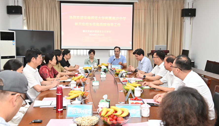 本网讯 6月20日,校党委书记谢冠华、校党委副书记欧洪湛、杰出校友、华南师范大学附属南沙中学校长林天伦到外国语言文化学院开展座谈会。宣传统战部、教师教育学院、校友会、基金会秘书处负责人,外国语言文化学院班子成员、教授和专业负责人参加了此次交流座谈会。
