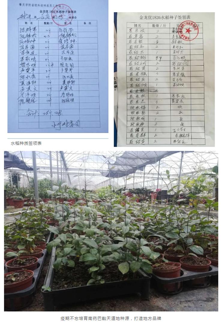 “按照党中央部署,当下最紧要的是助力春耕备种。”李新昌表示。团队通过快递送出自主研发的“金龙优1826”优质谷种,可耕面积近100亩。助力贫困村水稻生产。疫期期间,团队还在线指导本地扶贫企业开展巴戟天、金线莲等中草药的组培育苗和生态种植技术,严把助农科技关。