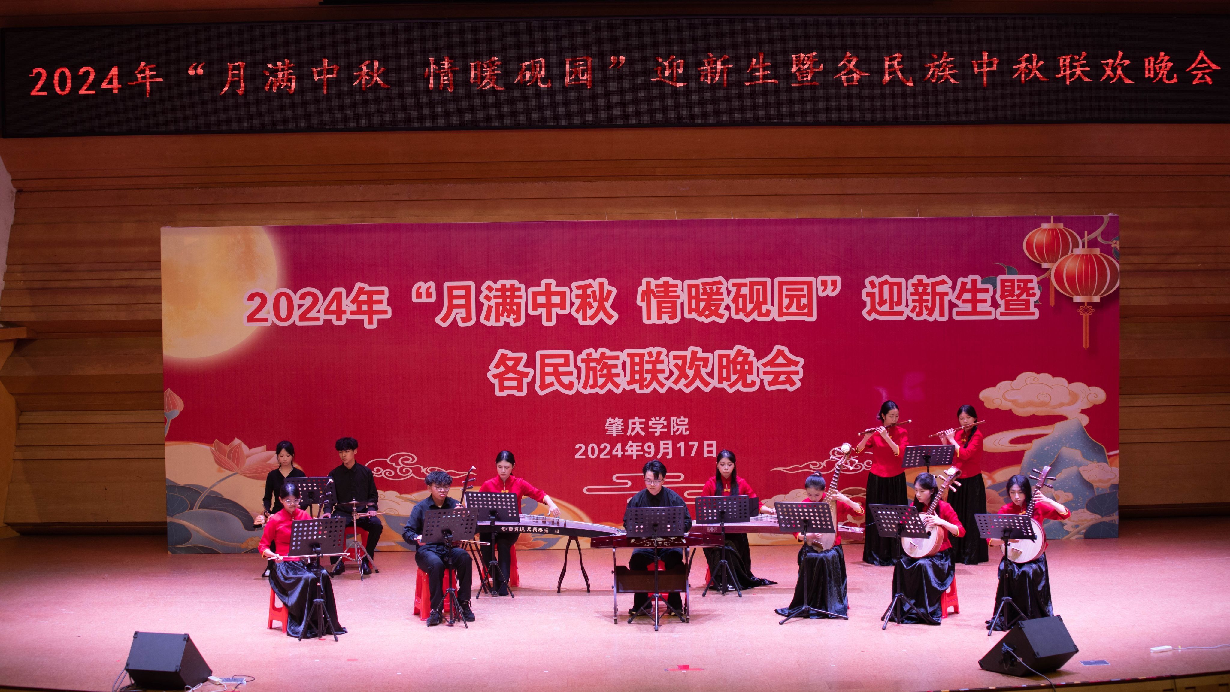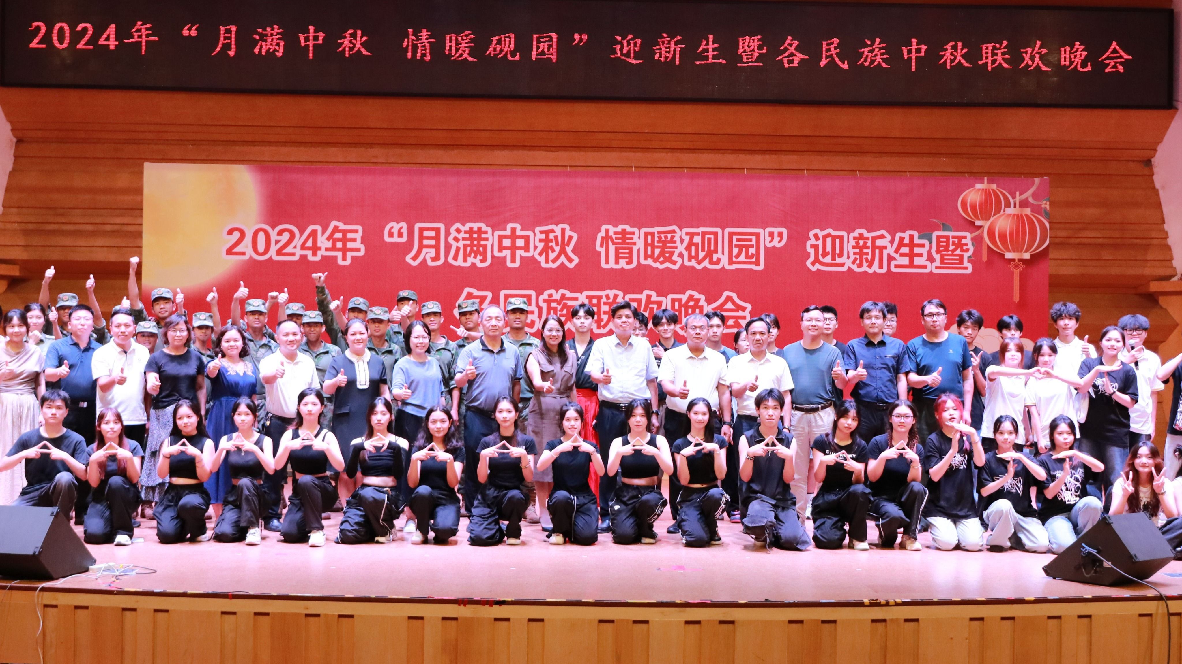 本网讯 为庆祝中秋佳节,同时热烈欢迎2024级新生的到来,9月17日晚,学校“月满中秋 情暖砚园”迎新生暨各民族中秋联欢晚会成功举办。晚会主会场设在yL23411永利官网登录陈熹音乐厅内,各二级学院在各自训练场举行了分会场欢庆活动。学校党委副书记欧洪湛、副校长李新昌出席活动,各单位相关负责人参加主会场活动。