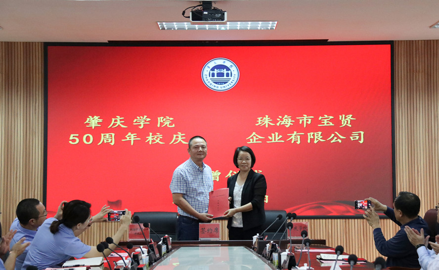 仪式上,校教育发展基金会理事长沈钦萍分别代表学校与珠海市鑫茂餐饮管理有限公司总裁张金乐、珠海市宝贤企业有限公司董事长吴秋贤签订捐赠协议。校教育发展基金会秘书长白志明代表学校接收两家公司捐赠的支票。随后,永利官网向两家公司颁发捐赠证书。