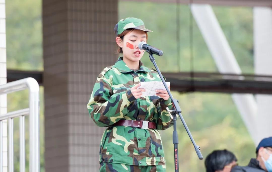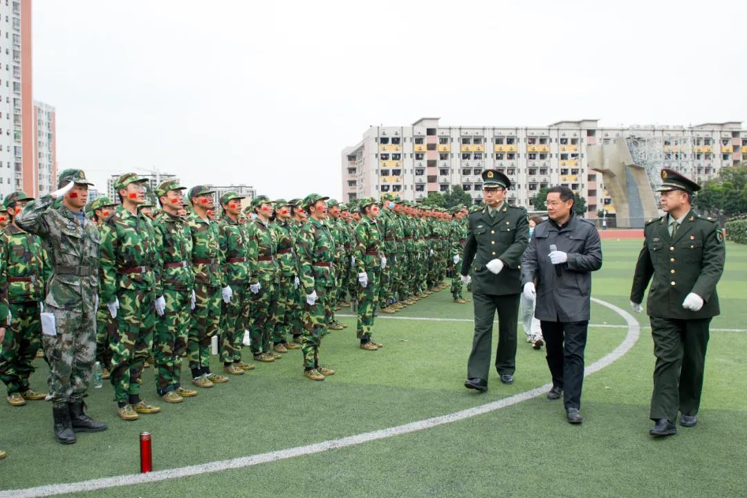 “‘朔气传金柝,寒光照铁衣’,刚才的军训汇演,同学们顶着寒风,精神抖擞,斗志昂扬,英姿飒爽,气势磅礴,展示出新时代青年听党指挥,能打胜仗,作风优良的英雄本色,展现了砚园学子迎接挑战、敢于战胜一切困难的决心和信心。”