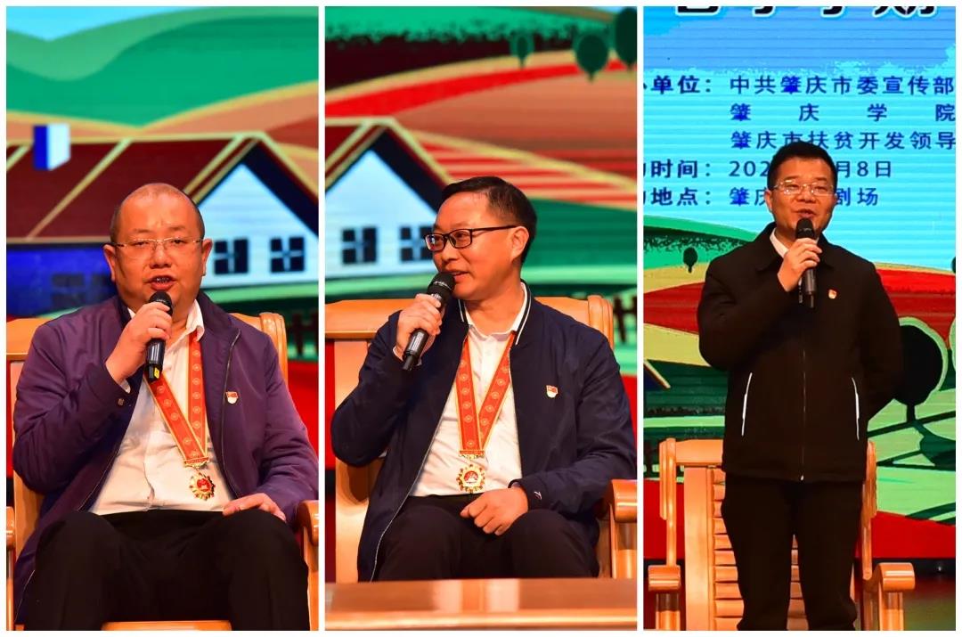 活动中,先进个人和先进集体通过与主持人的交流,分享了扶贫工作的故事和体会。其中,黄捷重点分享了遍访贫困户、助力贫困群众开办编织工作坊的故事,刘晓林重点分享了推动猴头菇种植并直播推销农产品的故事,工作组组长、肇庆市鼎湖区人民政府副区长陆开朝重点分享了团队成员走出广东、支援广西的故事。他们用朴实的语言讲述这些蕴含深情和热爱的故事,体现了舍小家、为大家,为国效力、为民服务、为脱贫攻坚事业奉献青春与汗水的崇高品质,既感人肺腑,也催人奋发。现场不断响起热烈的掌声,同时,许多青年学子备受感动,热泪盈眶。