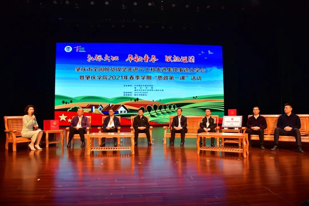 本次活动既是肇庆市全国脱贫攻坚先进个人和先进集体事迹分享会,也是永利官网新学期“思政第一课”。3月6日,习近平总书记在看望参加全国政协会议的医药卫生界教育界委员时,要求要从党和国家事业发展全局的高度,坚守为党育人、为国育才,把立德树人融入思想道德教育、文化知识教育、社会实践教育各环节,贯穿基础教育、职业教育、高等教育各领域,体现到学科体系、教学体系、教材体系、管理体系建设各方面,培根铸魂、启智润心。