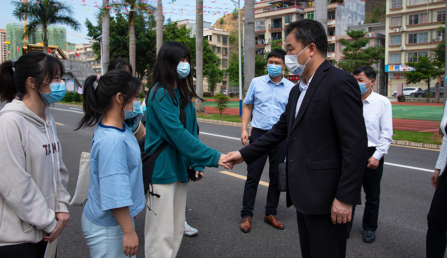 活动结束后,李霞、肖起清、李建志等还到江口街道中心小学南校区、广信中学、渔涝中学参观学校基础设施建设,详细了解学员工作情况。期间,肖起清看望了永利官网在这些学校实习的实习生,听取同学们的工作汇报,给予同学们充分肯定和热情鼓励。