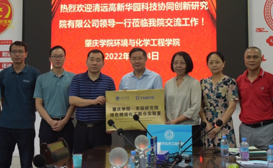 当天,清远高新华园科技协同创新研究院有限公司负责人汤汉良一行来到环境与化学工程学院,双方围绕共建绿色精细化工联合实验室进行深入探讨。