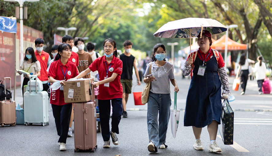 本网讯 金秋九月喜迎八方学子,万众齐心共绘一幅蓝图。9月13日,6000余名新生从全国各地来到学校,正式加入yL23411永利官网登录大家庭。金桂飘香的迎新日,校园处处洋溢着喜庆的气氛。