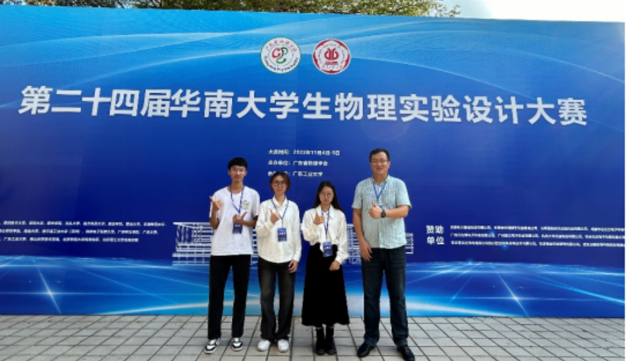 本网讯 11月4-5日,由指导教师杨丙文带队,电子学院21级学生洪恩仪、赵建朝、吕婉绵同学前往广州参加由广东省物理学会主办、广东工业大学承办的第24届广东大学生物理实验设计大赛,最终荣获大赛二等奖,为学校争得了荣誉。