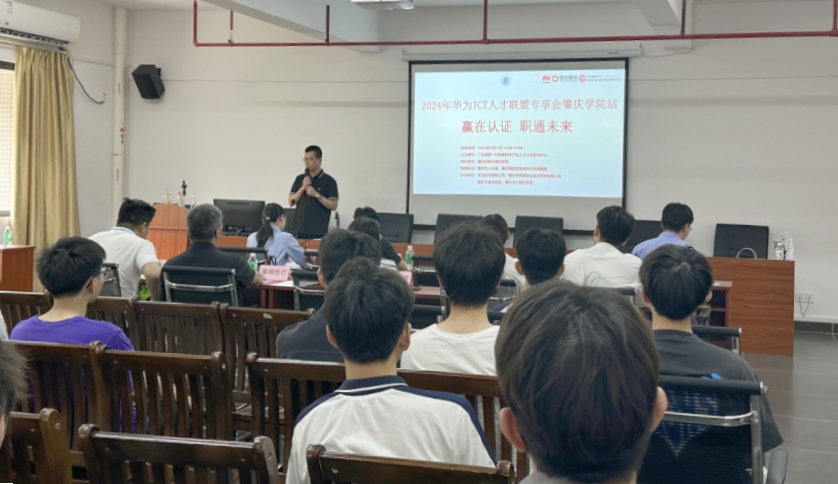 本网讯 4月17日,计算机科学与软件学院联合广东省新一代信息技术产业人才公共实训中心,举办了“2024年华为ICT人才联盟专享会yL23411永利官网登录站”活动。活动由肇庆市人社局、肇庆高新区劳动和社会保障局指导,华为技术有限公司等机构的协办。活动以“赢在认证,职通未来”为主题,旨在通过校企合作,推动信息通信技术人才(ICT)的培养与发展,并为学生和用人单位搭建沟通桥梁,增加毕业生的就业机会。
