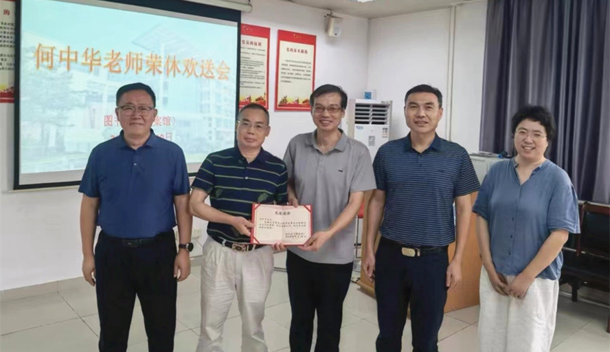 馆长班荣鼎和党总支书记黄镜辉充分肯定了何中华老师爱岗敬业的奉献精神,对他多年来对图书馆事业的无私付出表示衷心的感谢和崇高的敬意,希望何中华老师能够继续关注和支持图书馆(档案馆)各项工作,为图书馆(档案馆)发展献计献策。