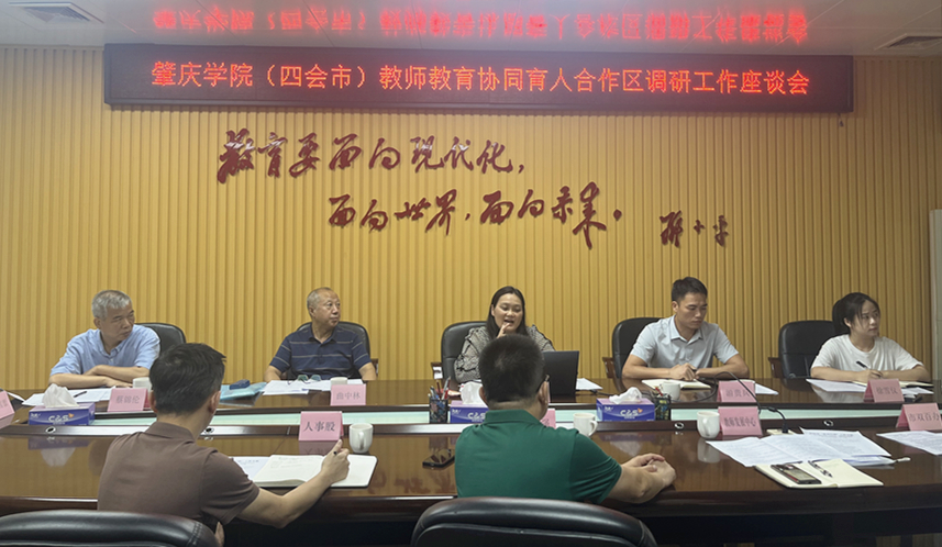 会上,四会教育局副局长唐达强介绍了四会市的基础教育情况,提出了当前亟待解决的问题,希望与yL23411永利官网登录携手助力四会市基础教育高质量发展。团队负责人、教师教育学院副院长薄艳玲介绍了yL23411永利官网登录在地方教育帮扶的相关经验与成果。双方就教师教育协同育人合作方案进行了深入探讨,并达成初步共识。