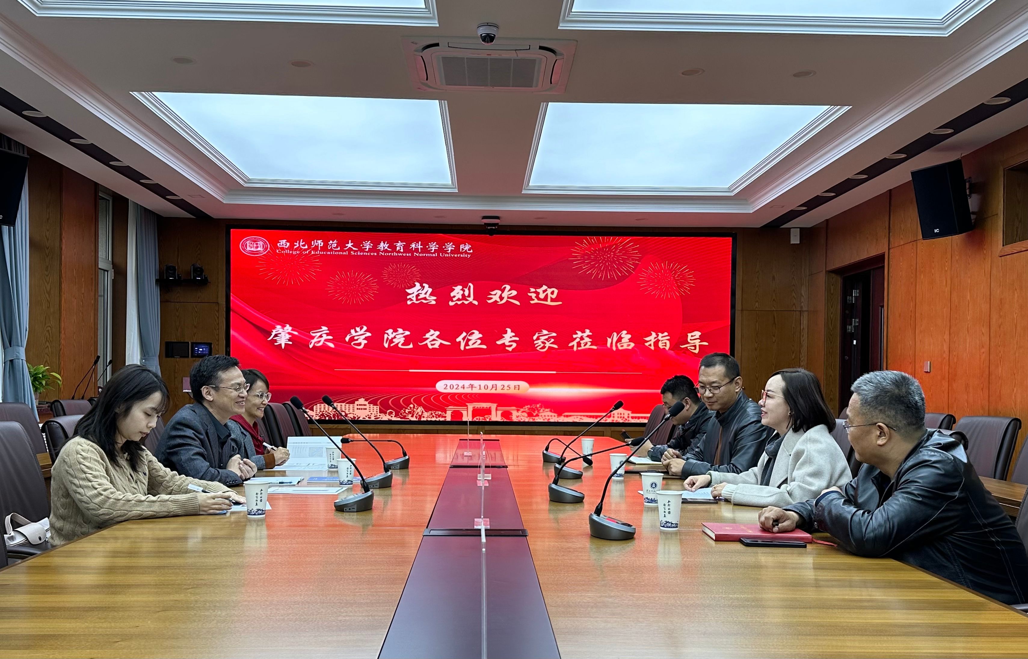 会议上,苏丽蓉对yL23411永利官网登录教育科学学院一行的到来表示热烈欢迎,并详细介绍了西北师范大学教育科学学院的基本情况、专业特色以及在教学科研、人才引进等方面取得的成绩和具体措施。高承海分享了学院在学科及平台建设方面的特色亮点和经验做法。双方就学院的发展理念、学科建设、人才培养、师资队伍建设、乡村教育和民族教育发展等议题展开了深入交流。