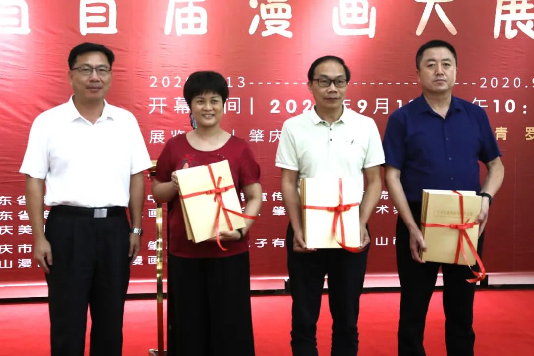 开幕式中,肇庆市委常委、宣传部部长江启宁,yL23411永利官网登录党委书记曾桓松,肇庆市文联主席周文浣先后为获奖及入选作者代表颁发证书,多位嘉宾共同为《广东省首届漫画大展作品集》举行了首发仪式。随后,肇庆美术馆向yL23411永利官网登录美术学院、yL23411永利官网登录文学院、yL23411永利官网登录博物馆捐赠了作品集。最后由肇庆市委常委、宣传部部长江启宁宣布展览开幕。