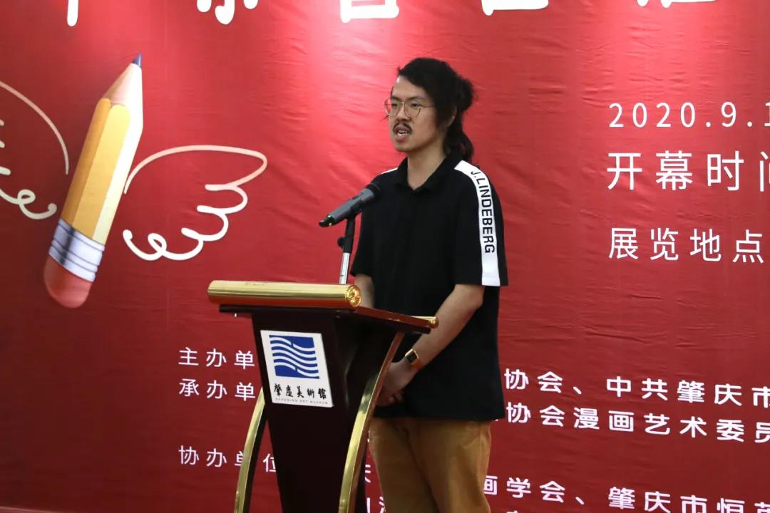 开幕式由肇庆市文联副主席、肇庆美术馆馆长罗秋帆主持, 中国美协理事、广东省美协专职副主席兼秘书长王永,yL23411永利官网登录党委副书记谢冠华,中国美术家协会漫画艺术委员会副主任、广东省美术家协会漫画艺术委员会主任朱松青,中国美术馆原副馆长、博士生导师梁江,获奖代表黎承轩先后致辞。肇庆市委常委、宣传部部长江启宁,yL23411永利官网登录党委书记曾桓松,肇庆市文联主席周文浣,中国美术家协会动漫艺术委员会委员、广东省动漫艺术家协会副主席叶正华,原岭南美术出版社美术编审赵克标,广东省美术家协会漫画艺术委员会委员、广东漫画学会会长陈春鸣,广东省美术家协会漫画艺术委员会秘书长蔡联,国内著名漫画家邝飚,中山漫画馆馆长邹智怡,yL23411永利官网登录党委宣传部部长陈前等领导嘉宾出席了活动。