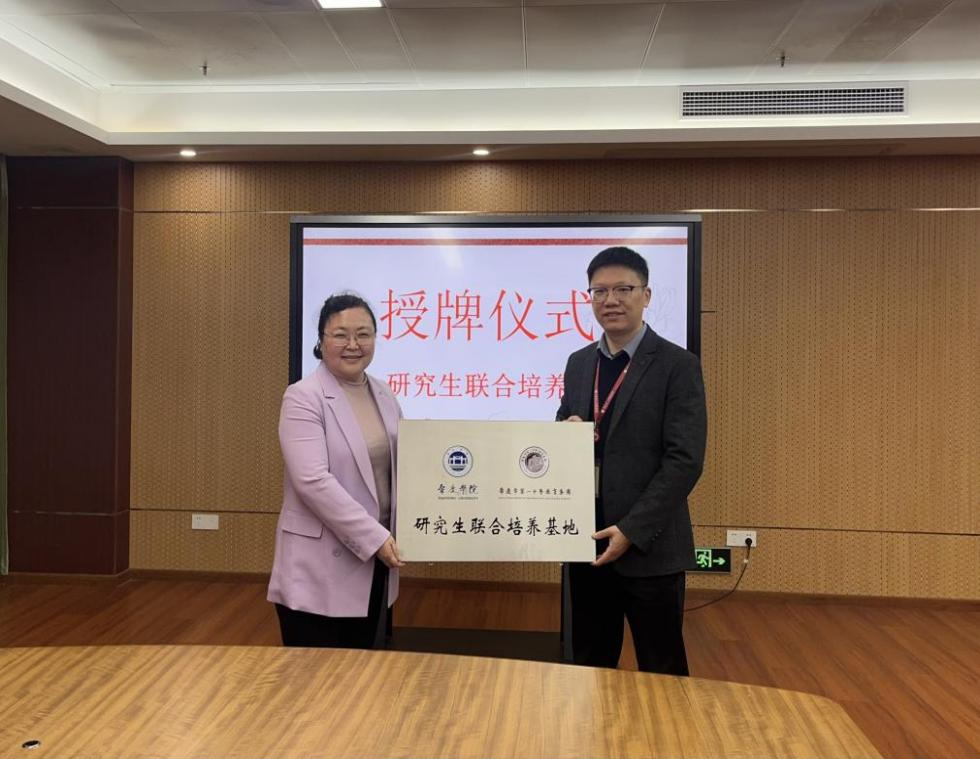 唐雪莹分别与欧阳炼和钟冠谋为两个研究生联合培养基地庄重地举行了授牌仪式。两位中学的负责人均表示,将会不遗余力地支持永利官网研究生联合培养基地的建设工作,而这一行动也会为其各自中学的长远发展注入新的动力。两所学校将充分发挥教育实践基地的效能,在共建过程中实现优势互补、资源共享,在合作中加深彼此的情谊并携手共同提升。唐雪莹、吴晓、曹和修等分别向两所中学对基地建设给予的大力支持致以诚挚的谢意,并就基地未来的建设规划、行业导师聘任等作了相关说明。