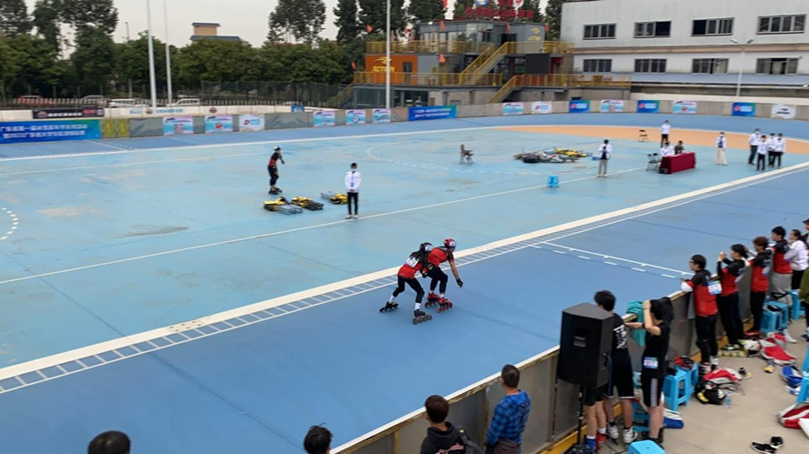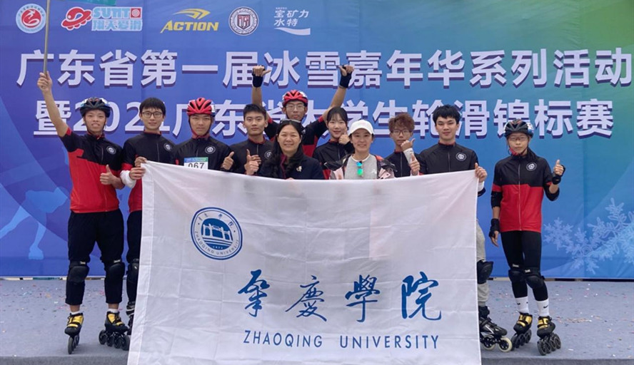 本网讯 12月19日,广东省第一届校园冰雪嘉年华系列活动暨2021年广东省大学生轮滑锦标赛在佛山顺德举行,由体育与健康学院党委副书记(主持工作)梁艳红担任领队、李灵超老师担任教练员、8名同学组成的yL23411永利官网登录代表队首次参赛,在赛场上顽强拼搏,奋勇争先,最终荣获甲组速度轮滑800米接力赛第一名、乙组速度轮滑800米接力赛第一名、甲组女子人花式动作计时第二名的优异成绩。