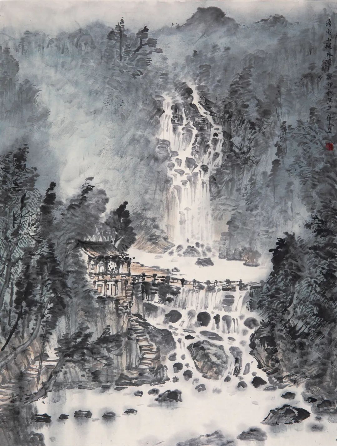 方楚雄《鼎湖山飞水潭》 中国画 45x34cm