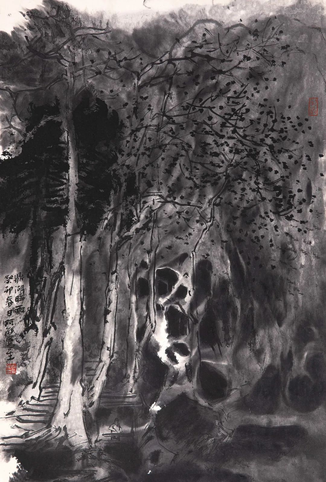 郑阿湃《鼎湖时雨》 中国画 68x35cm