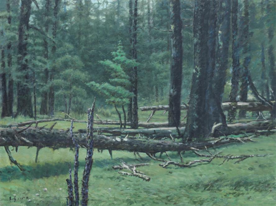 《生生不息·云南丽江云杉坪》 油画 100×75cm 2002年