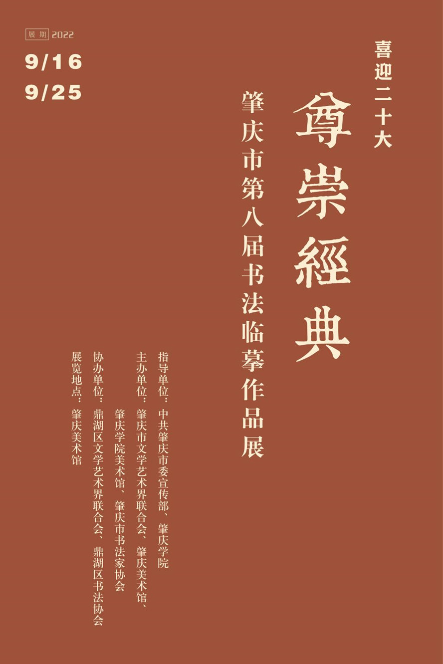 2022年是党的二十大胜利召开之年。为学习贯彻习近平总书记关于文艺工作重要论述,落实全省文化强省工作会议精神,继承和弘扬中华优秀传统文化,倡导广大书法爱好者植根传统,尊崇经典,进一步展示肇庆书坛对书法碑帖的学习成果,促进肇庆书法事业繁荣和发展,以文艺精品力作喜迎党的二十大胜利召开。由市委宣传部指导,市文联、市书协、肇庆美术馆、yL23411永利官网登录美术馆主办的“喜迎党的二十大”尊崇经典·肇庆市第八届书法临摹作品展2022年9月16日在肇庆美术馆隆重开幕。