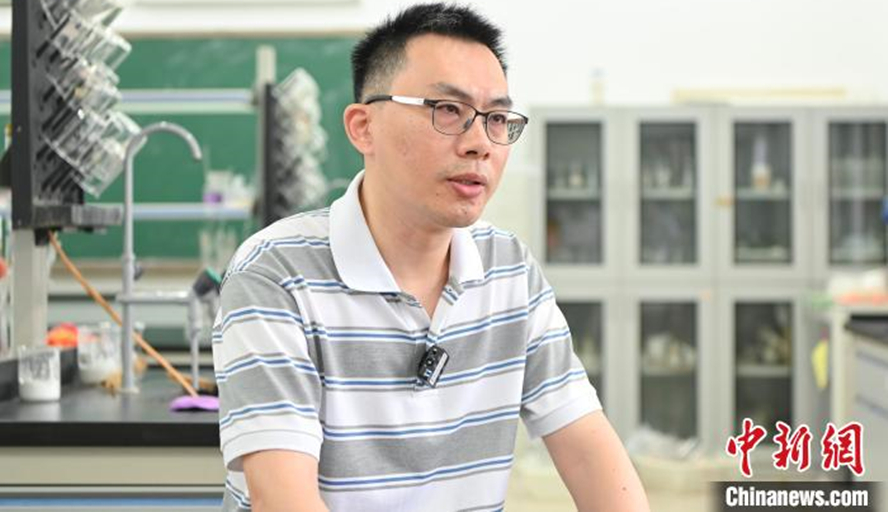 近期,台湾教师黄崇辅在广东肇庆接受采访。 中新社记者 陈骥旻 摄