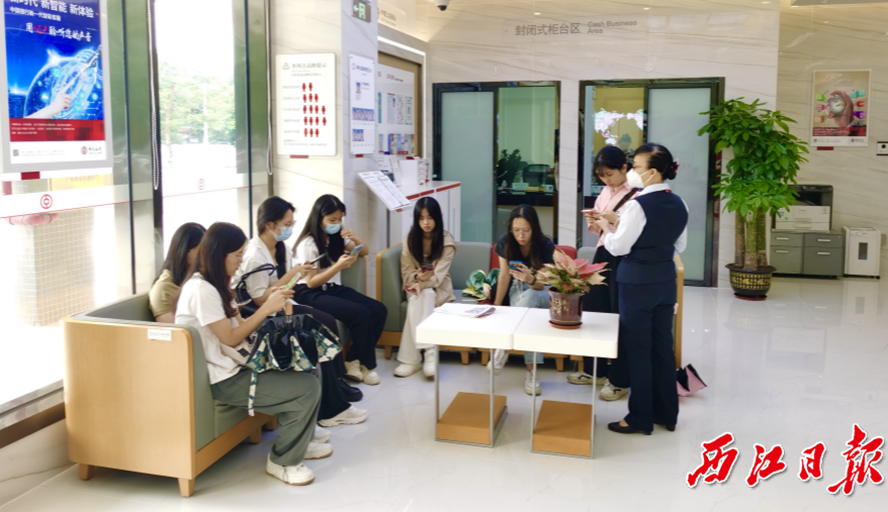 工作人员在网点服务大学生办理相关业务。受访单位供图
