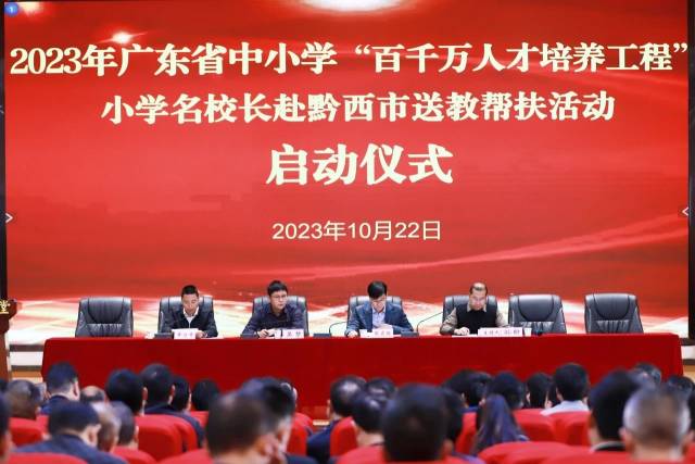为充分发挥“百千万人才培养工程”省级培养学员的示范引领和辐射带动作用,促进毕节市乡村教师队伍专业发展,10月22日—27日,经广东省粤黔协作工作队广州工作组牵线,广东省教师发展中心组织2023年广东省中小学“百千万人才培养工程”项目的小学名校长走进毕节市黔西市开展送教帮扶活动。