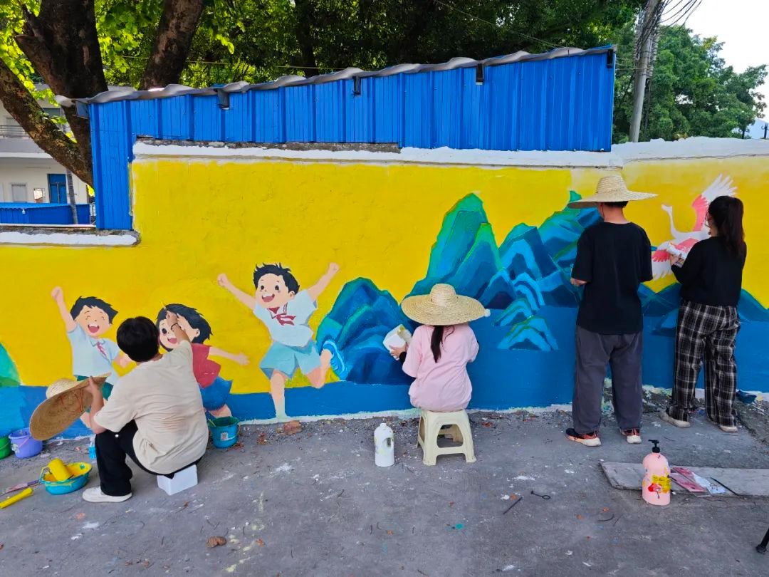 走进石牌社区,处处洋溢着乡村文明新气象。经过连日来的绘制,青年大学生“百千万工程”突击队已经在石牌社区完成一幅近50米的墙绘,展示了社区周边文旅特色,并营造了校地共建助力“百千万工程”的浓厚氛围。