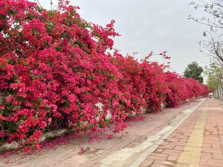 最近,肇庆七星路旁那大片的三角梅墙吸引了不少市民前去“打卡”。这片三角梅花墙,延绵数十米,小小花朵恣意盛开,每一片红苞都坚挺有力。但你知道,这片花海是谁种的吗?