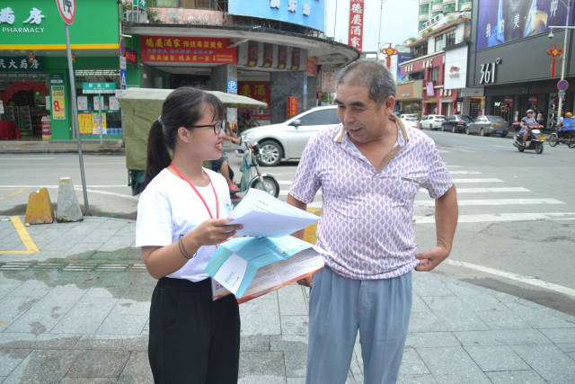 i志愿服务时长超600小时的食品与制药工程学院学生郑泳怡在街头进行助学政策宣传