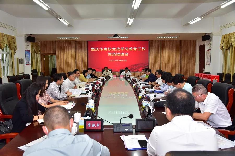 为推动我市高校党史学习教育高标准高质量开展,结合省委党史学习教育第五巡回指导组对我市高校开展党史学习教育专项督导反馈情况,10月19日,市委教育工委在yL23411永利官网登录召开全市高校党史学习教育工作现场推进会,落实整改我市高校党史学习教育中存在的不足,部署下阶段工作任务,推动我市高校党史学习教育持续深入。市委党史学习教育第三巡回指导组组长陆崇尧,市委教育工委书记、市教育局党组书记、局长罗浩翔出席会议并讲话。市教育局三级调研员、局直属机关党委书记李湘生主持。市教育局高校党建办干部,yL23411永利官网登录、肇庆医学高等专科学校、广东理工学院、广东工商职业技术大学、广东信息工程职业学院、广东肇庆航空职业学院党委负责人及相关同志参加。