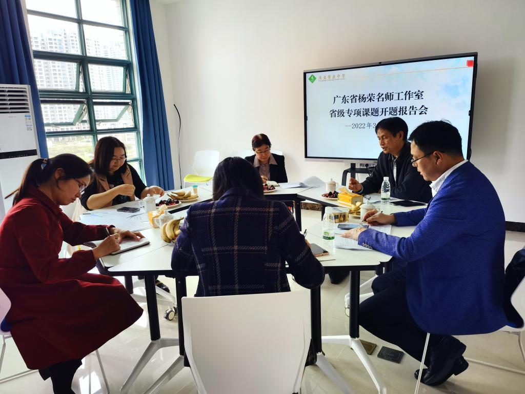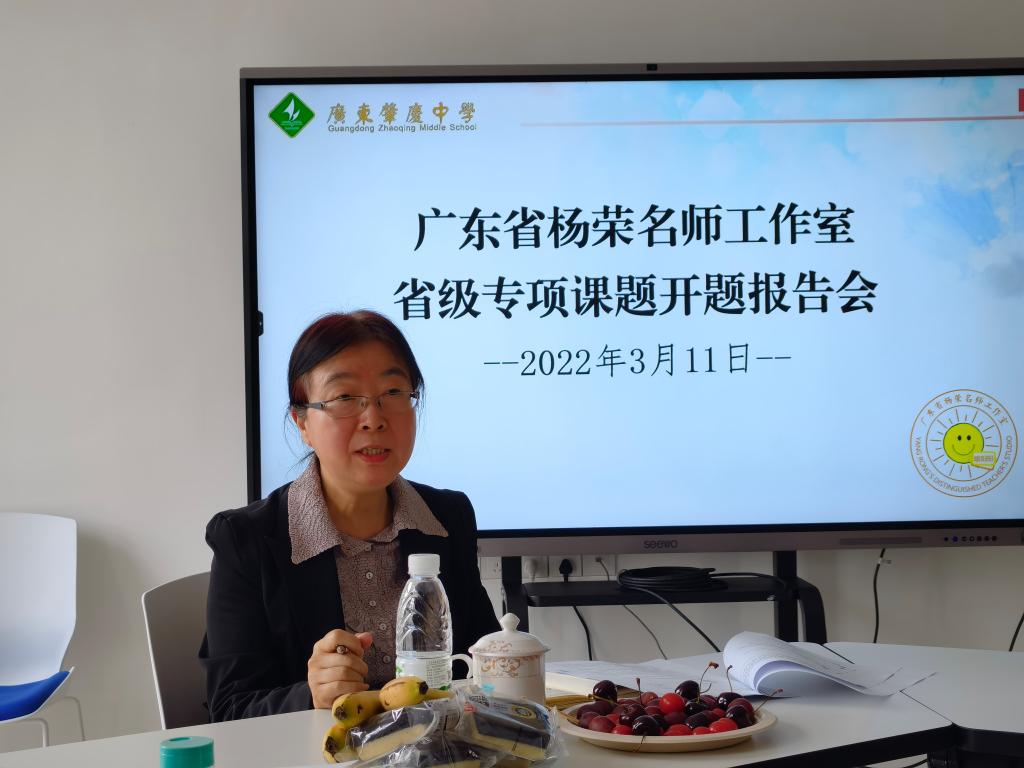 2022年3月11日下午,阳春三月,微风拂面,广东省杨荣名教师工作室省级专项课题开题报告会在广东肇庆中学东湖校区举行。报告会邀请肇庆市教师发展中心黄国洪主任以及yL23411永利官网登录外国语学院马宁慈教授作为评审专家,课题组的部分成员参加了会议。