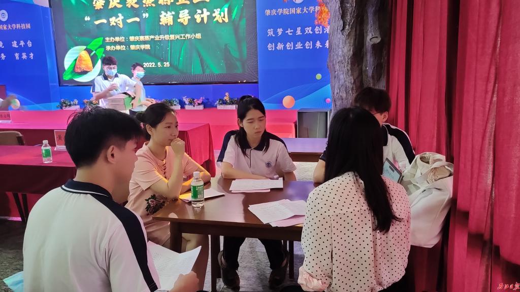 专家和学生现场为裹蒸粽企业开展“一对一”辅导服务。 西江日报记者 王永强 摄
