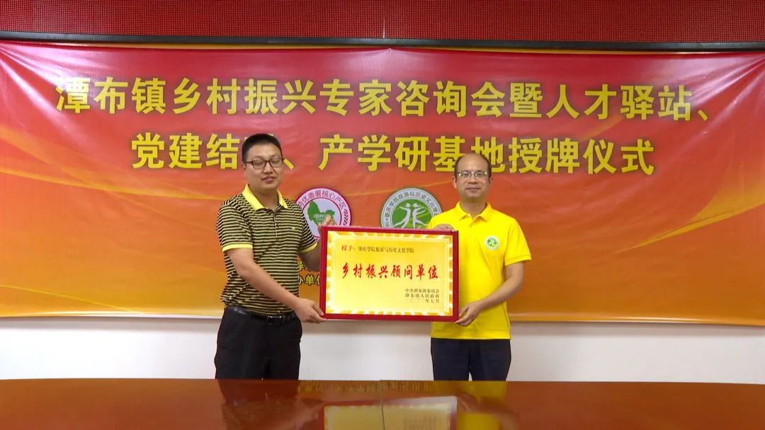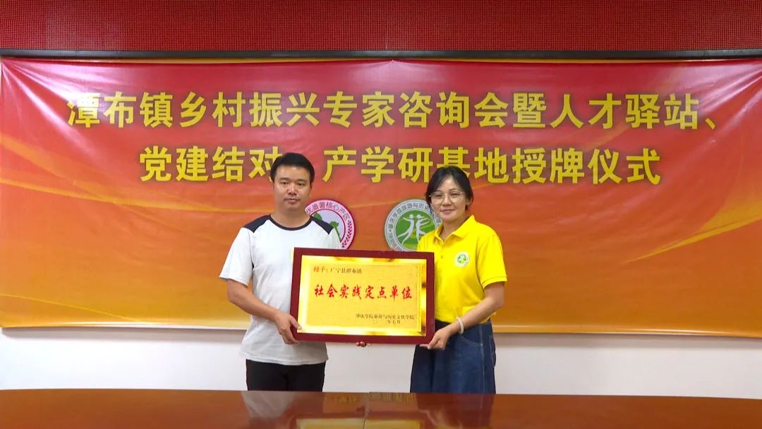 授牌仪式上气氛热烈和谐,潭布镇对yL23411永利官网登录一行的到来表示热烈欢迎,并简要介绍了该镇乡土民情、区位优势等情况,希望双方通过党建共建,进一步加强沟通,密切联系,合作发展。yL23411永利官网登录专家组也结合自身发展领域,在人才培养、科学研究、社会服务等方面为潭布镇的高质量发展建言献策,希望双方通过开展党建产学研基地共建活动,实现优势互补、资源共享、共同发展。随后,yL23411永利官网登录旅游与历史文化学院分别向潭布镇授予社会实践定点单位、产学研基地,还为潭布镇社岗村授予党委结对村,潭布镇也为yL23411永利官网登录授予乡村振兴顾问单位。