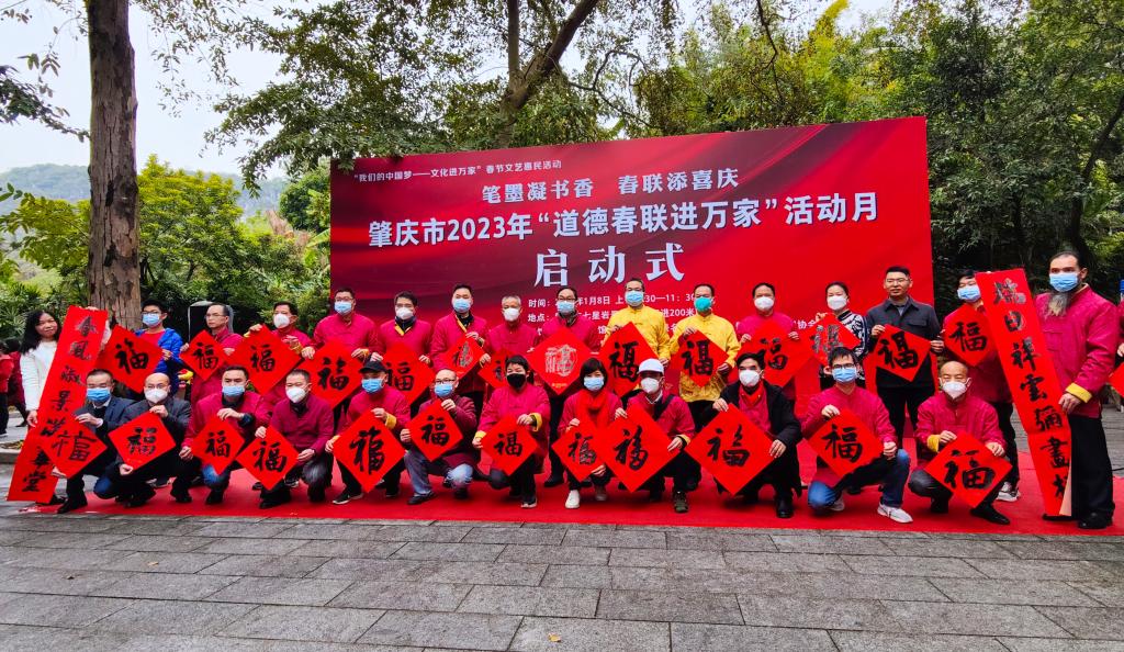1月8日上午,由肇庆市文联、肇庆星湖管理局、yL23411永利官网登录、肇庆美术馆、黎雄才美术馆、肇庆市书法家协会联合主办的2023年“道德春联进万家”活动月启动仪式在七星岩西江情小广场举行。书法家现场挥毫,免费为市民写春联、送福字,将新春美好祝福送到千万家,让即将到来的春节增添浓浓“年味”。