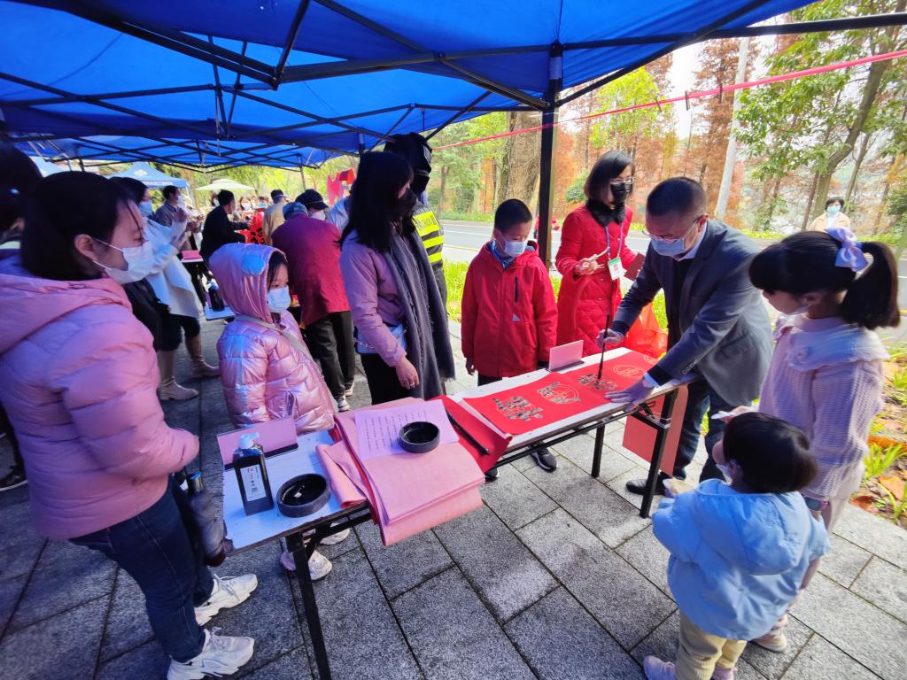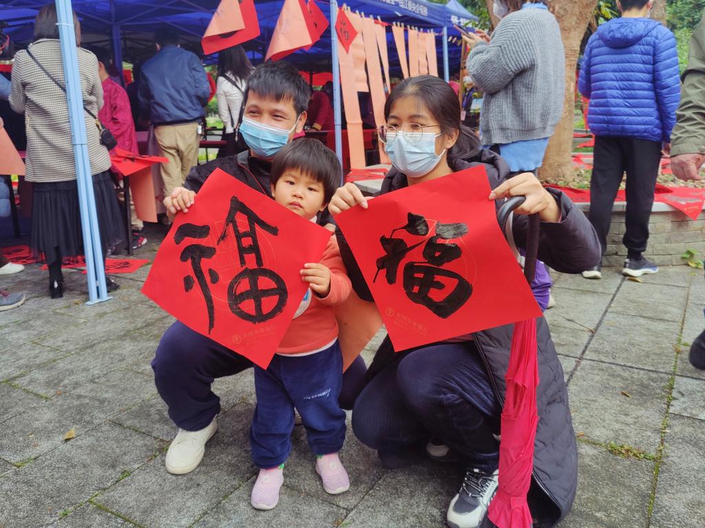新春佳节写春联、贴春联,是中华民族的传统习俗,是老百姓辞旧迎新、表达新年愿望的重要方式。市民陈先生今天一大早就带着老婆和孩子来到活动现场,他获得了心仪的春联和福字,开心地向亲友展示。
