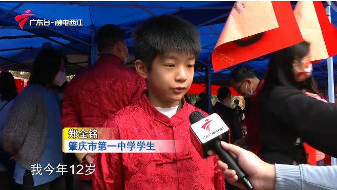 来自肇庆市第一中学的初一学生郑全铭是每年送春联活动的“常客”,别小看这位“小书法家”,一横一撇一捺笔落字现,一气呵成,颇有书法大家风范,让围观的群众都赞叹不已。