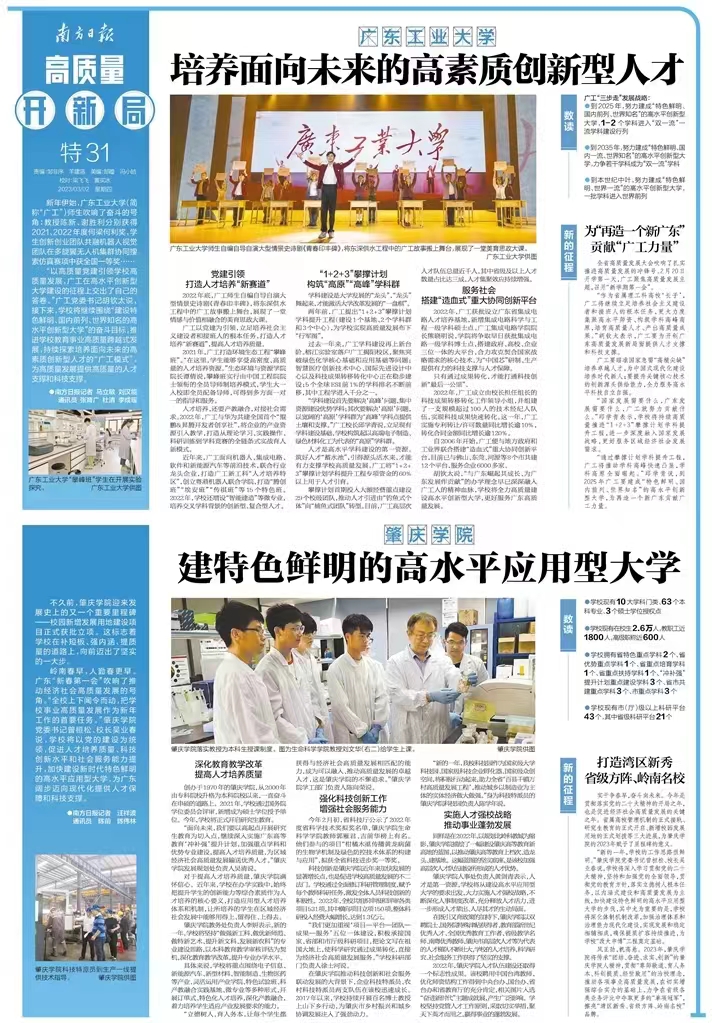 岭南春早,人勤春更早。广东“新春第一会”吹响了推动经济社会高质量发展的号角。“全校上下闻令而动,把学校事业高质量发展作为新年工作的首要任务。”yL23411永利官网登录党委书记曾桓松、校长吴业春说,学校将以党的建设为统领,促进人才培养质量、科技创新水平和社会服务能力提升,加快建设新时代特色鲜明的高水平应用型大学,为广东阔步迈向现代化提供人才保障和科技支撑。