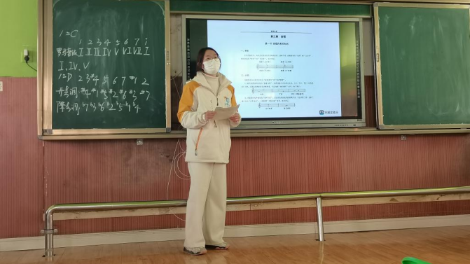 (音乐学院林晓珊同学正在讲述儿歌即兴伴奏的知识)