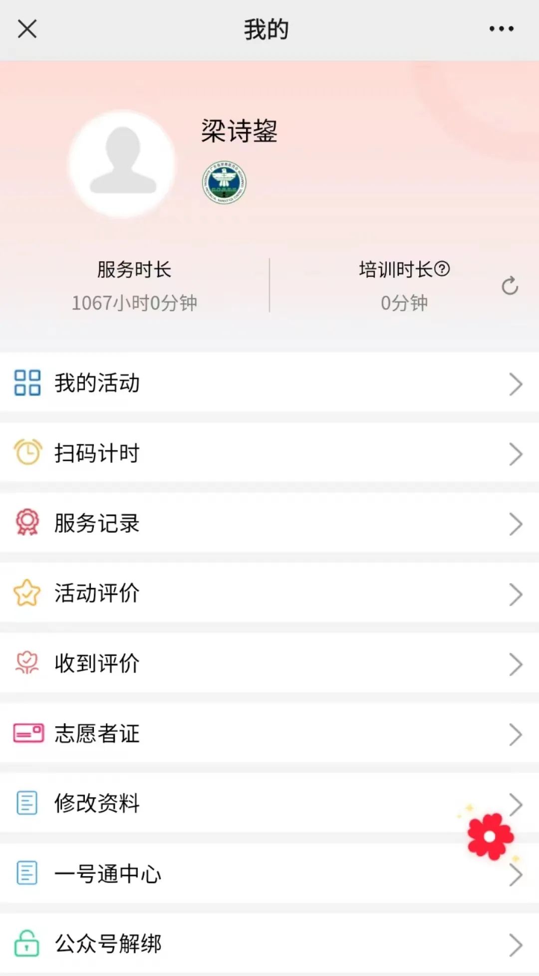 我很荣幸地获得了“肇庆市五星级志愿者”称号。望着自己的志愿时长达到1060个小时,我似乎还能回想起每一次帮助他人时的自豪感和喜悦,六年的时间悄悄过去,可我还是觉得自己的志愿服务之路才刚刚起步,我想未来尽更大的努力,有一分热发一分光,更爱这个社会和社会上的人们。