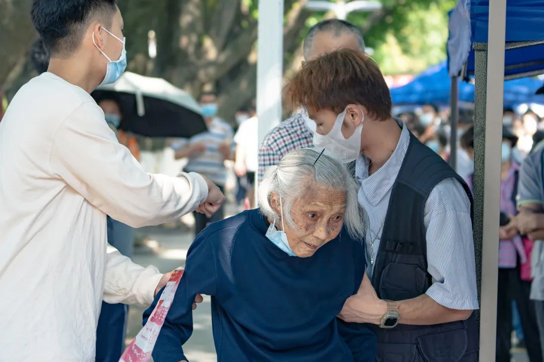 不管是对医护人员、志愿者投去感谢的眼神